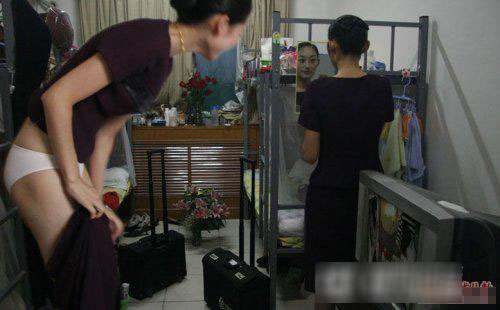 宿舍里有航班任务的化妆,梳头,穿衣准备。