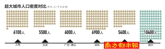 综合开发研究院金融与现代产业研究所副所长胡彩梅介绍,我国目前共有特大城市16个,其中超大城市6个,分别是上海、北京、深圳、广州、天津和重庆,剩下还有10个是特大城市。这几个超大城市人口密度,上海是6100人/平方公里,北京为5500人/平方公里,广州-佛山为6000人/平方公里,深圳是6900人/平方公里、天津是5400人/平方公里,首尔为10400人/平方公里。“从这个对比来看,我们国家超大城市人口密度并不算特别高。这也说明,未来人口还会继续向超大城市集聚。”胡彩梅提到,16个特大城市,到目前对于全国GDP贡献大概达到30%,也算是比较大。