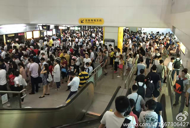 昨日上午8点半左右,晶报记者接到读者报料,地铁环中线(5号线)早高峰出现故障,致列车延误,部分站台内挤满了人。市民李先生称,8点半左右,在五和地铁站,往前海湾方向的列车出现故障,导致地铁站内挤满了等地铁的乘客。图:网友“老张老鬼老混混”