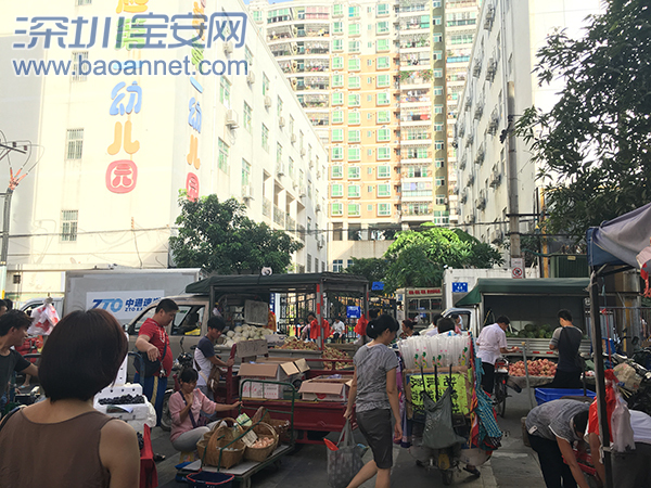记者了解到,崛起幼儿园位于海汇路(宝安大道-翻身路)路段,在幼儿园正对面的创业西一巷是这一路段唯一一个卖菜集市,服务附近群贤花园、富华花园、登科花园、海景花园等多个居民区,在早、晚高峰时段人流密集。