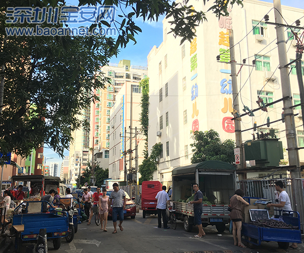 记者了解到,崛起幼儿园位于海汇路(宝安大道-翻身路)路段,在幼儿园正对面的创业西一巷是这一路段唯一一个卖菜集市,服务附近群贤花园、富华花园、登科花园、海景花园等多个居民区,在早、晚高峰时段人流密集。