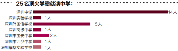 根据公开资料统计显示,从2008年至2016年,深圳市高考“顶尖”考生(文、理科状元及挤进全省前十名考生)共计有25人,其中女生14人,男生11人。