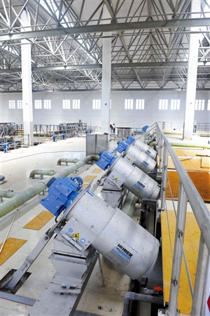 福田污水处理厂爆气沉砂池工作间现场。 深圳晚报记者 陈玉 摄