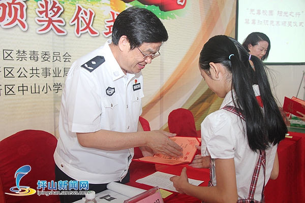 在颁奖仪式上,王德明为获奖学生代表颁发证书,并作发言。他指出,当前禁毒形势依然严峻,禁毒工作要常抓不懈,营造青少年积极健康的成长环境。他同时希望,新区中小学生要从小培养防毒拒毒意识,远离毒品,热爱生活,抵制诱惑。