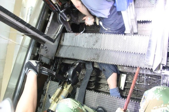 当时,深圳市市监委相关负责人在手扶电梯入口处,向人大执法检查组介绍了中心城电梯维保工作。随后检查组成员走上扶梯准备从G层上到U G层,电梯运行到一半时突然发出“咚咚”声响并震动了两三下,随后紧急制动。一行人均受到不同程度的惊吓。