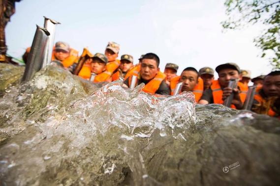 据“临汾旅”政委、现场总指挥廖文生介绍,在5月下旬,该旅就进行了大规模的抗洪抢险救灾演练。对克服管涌、排出渗水、构筑子堤、固定滑坡这四项内容进行逐一考核。全旅官兵有信心克服困难,保护好沿岸人民的生命财产安全。