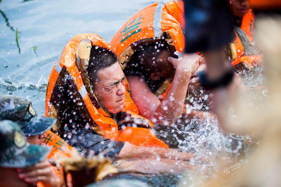 7月5日,暴雨袭击南京。今天凌晨,在大堤上奋战四小时的官兵们已经疲惫不堪,但所有人都在咬牙坚持。二营四连战士张海威因为不间断搬运沙袋饥渴难耐,顾不上喝水的他仰起头,张开嘴喝着倾泻而下的雨水。