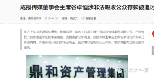 黄品静的家业在2014年深陷麻烦,其家庭控制的阿里山味食品有限公司在坪山有一块17万平米的土地,公司在2014年9月法定代表人变更为谷卓恒。谷卓恒曾是香港成报传媒董事局主席,2015年年初,因涉嫌非法吸收公众存款潜逃,被警方网络追逃。