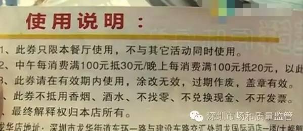 景女士:“这是第一次吃饭送的代金券。(这个代金券是100元的代金券。)上面写着,中午满100抵30,晚上100抵20,以此类推,这上面写的非常清楚。买单的时候服务员却说这个代金券 不是这样的,