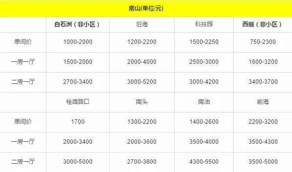 福田的八卦岭、上下沙片区由于小户型居多,套均租金相对较低,基本都在3000~4000元之间。而香蜜湖、福田中心区这些传统豪宅区均租价基本在100元/平方米左右,香蜜湖的套租更接近10000元/套。