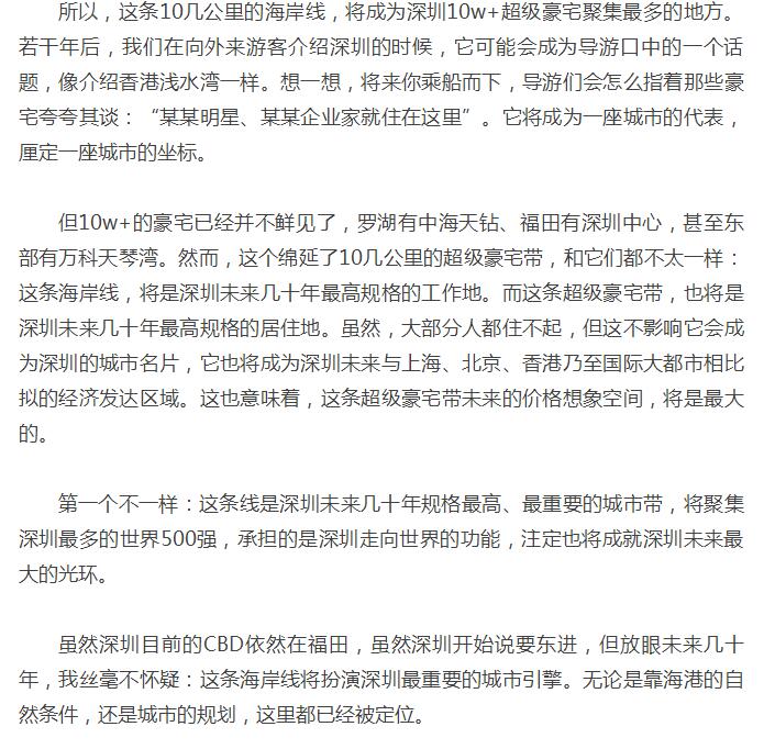 深圳15公里滨海长廊 正崛起一条“10W+超级豪宅带”
