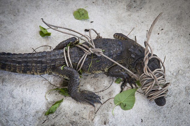 墨西哥泻湖变"血湖" 屠户杀猪吸引数百鳄鱼