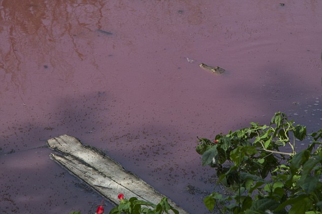 墨西哥泻湖变"血湖" 屠户杀猪吸引数百鳄鱼