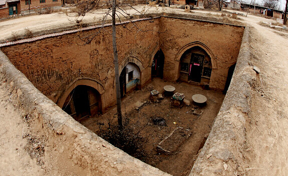 地坑边上像房顶散水坡一样,下边是黄土的墙和窑洞。人住在坑里,排水问题自然是第一大事。