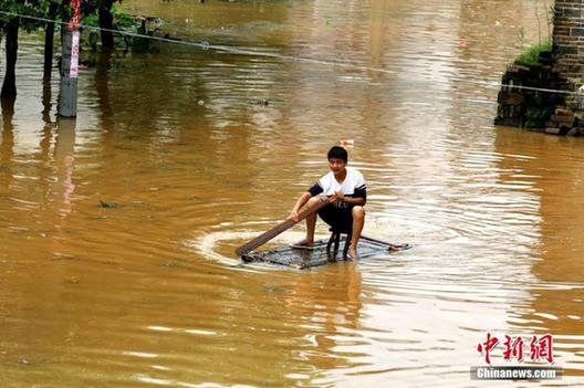 7月18日,江西省遂川县于田镇夏溪村遭遇大暴雨袭击,多地暴雨成灾,沦为一片汪洋。7月17日8时至18日8时,江西遂川县普降暴雨、局部特大暴雨,累计雨量超过100毫米和160毫米。据初步统计,这次强降雨导致该县雩田、大汾等乡镇1.9万人受灾,倒塌房屋265间,转移受困群众1920人,于田镇田心、沿溪、夏溪等14个村农田受淹,无人员伤亡。李建平 摄