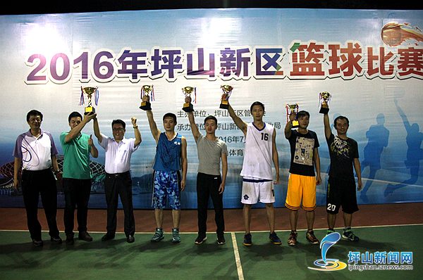 赛后,举行了简单而隆重的颁奖仪式,新区公共事业局副调研员谢忠克为取得第一至六名的新领域体育(江金峰)、坑梓办事处、老坑社区、坪山办事处、坪山公安分局、富斯达公司等代表队颁发了奖杯,为荣获优秀组织奖的江岭社区、新区综合办公室,以及荣获体育道德风尚奖的高精准公司、怡富包装公司等代表队颁发了奖牌。至此,2016年坪山新区男子篮球赛顺利闭幕。