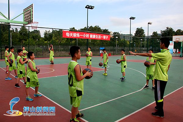 比赛场地旁边小朋友们参加篮球夏令营活动