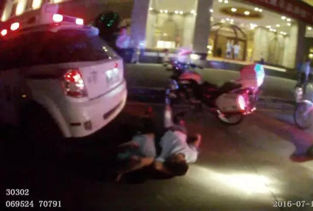 原标题:朋友醉驾被带走 4人躺地拦警车