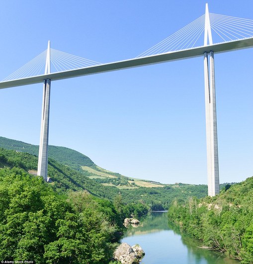 法国的米洛高架桥是世界上最高的桥,距地1125英尺(约342.9米),最高处超过埃菲尔铁塔。它的下面经常有云漂浮,让行人有一种行走在云端间之感。