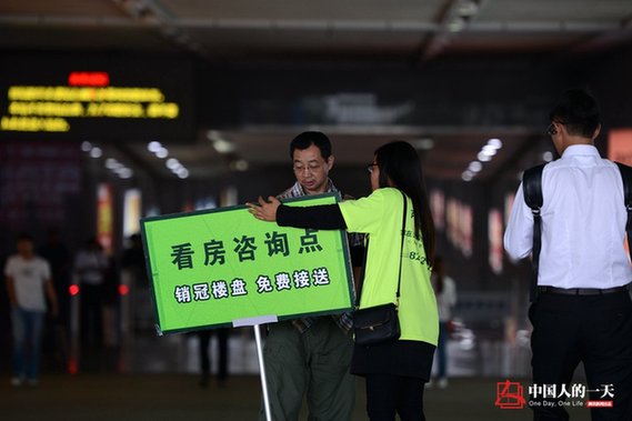 2016年初,上海推出“沪9条”楼市限购新规,导致上海楼市购买力外溢,5月底,嘉兴出台购房新政,上海缴纳公积金可以在嘉兴购房,享受公积金贷款。两城双政,吸引了大批上海购房者到嘉兴购房。刚过去的6月,浙江嘉兴市区楼市成交量达7166套,较5月份翻了一番。这是嘉兴楼市有成交备案数据以来,市区商品房月成交量的历史最高值。图为在嘉兴高铁南站,一些售楼人员拿着牌子拦截从上海前来的购房客。