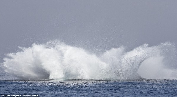 当鲸鱼落回水面溅起巨大水花,整艘船“被尖叫声淹没了”