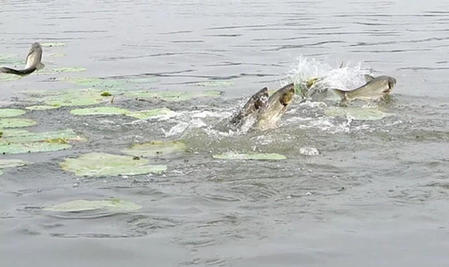 暴雨后鱼群集体跳出水面 上演“跃龙门”奇景