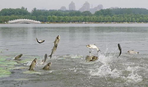暴雨后鱼群集体跳出水面 上演“跃龙门”奇景