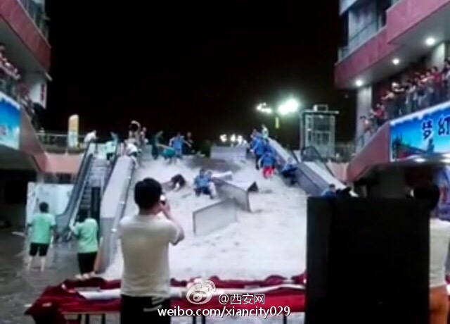大雁塔秦汉唐员工商户被水流冲散。
