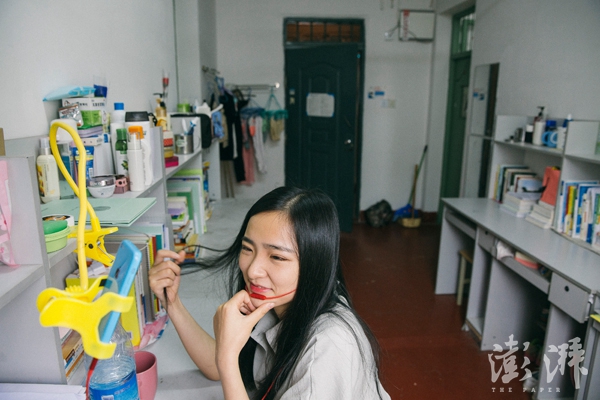 2016年5月8日周日,蒋梦娜在寝室里做直播,“网红”班的女生早已成为各直播平台争夺的对象。
