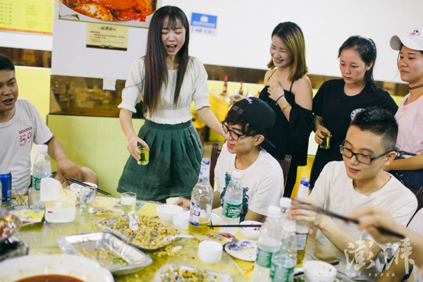 凌晨,女主播同事们排队向唐伟敬酒。在刚结束的直播里,唐伟创下了百万观众的公司直播纪录。对于直播“网红”们来说,日均百万观众意味着月入百万人民币。