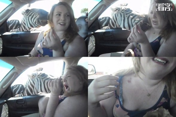 动物的世界并非向《动物世界》的解说一样那么舒缓柔和,而是暗藏着不可预估的危险,让人们猝不及防。图为2012年1月18日,美国,一名女子在车内吃薯条时,一头斑马把脑袋探进车内,咬伤了女子的肩部。视觉中国供图