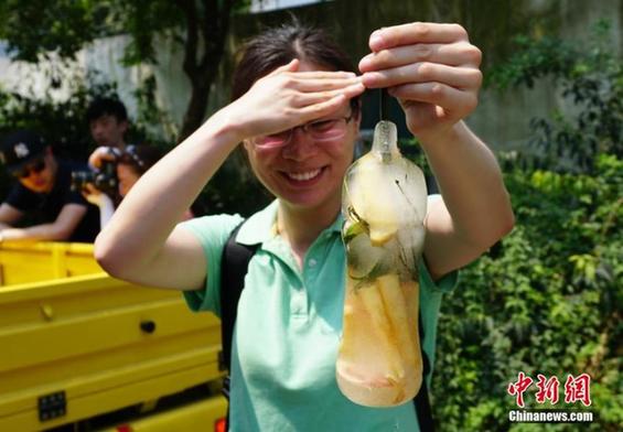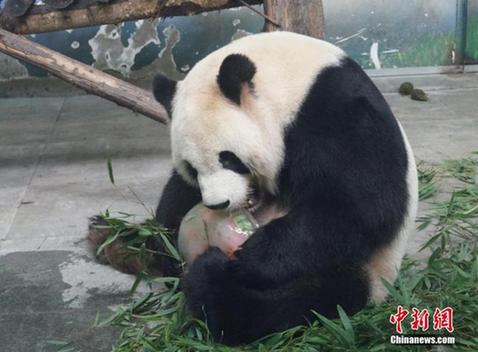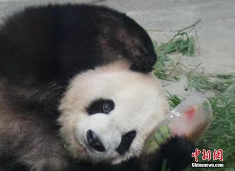 当天,武汉市气温高达36度,为入夏来最高气温,武汉动物园也在当天给熊猫等馆放置冰块,让动物们清凉度夏。