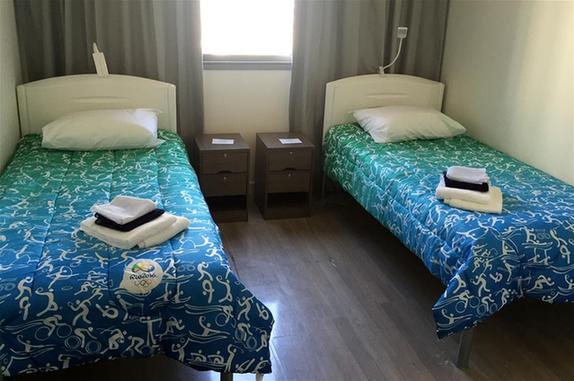 不过,这2室1厅户型中,卧室并不大,倘若用作双人间就稍显局促,单人床长约2米、宽约1米,这对那些人高马大的运动员来说比较小。