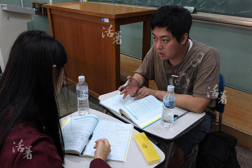 中国留学生学习韩语,韩国学生也因为中国市场巨大而学中文。华侨后代陈志宁(右)于是当上了韩国学姐成惠仁的中文老师。华侨在韩国是一个很特殊的存在,几乎都保留着中国国籍,并不加入韩国国籍。陈志宁的祖父和父亲在首尔拥有一个私立中医医院,但陈志宁坚持学了电影。