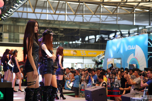 2016年07月30日,上海,今年20岁李晓璇是南通大学音乐表演专业大三的学生,今年是她第三年参Chinajoy。李晓璇笑着说,“参加这个展会做模特是因为我对游戏和动漫周边的比较感兴趣,而且据说Showgirl会比普通观众有更多的机会能拿到玩偶哦!”模特们在展会上始终面对着众多摄影爱好者们的“长枪短炮”,她们时刻要保持优美的体态和甜美的笑容,“今天我上午有3场秀,下午3场秀,中午只有很短的时间休息吃饭。”图为2016年07月30日,上海,展会开始前,李晓璇在自己化妆。阿德/视觉中国