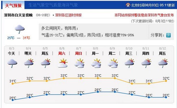 随着“妮妲”远离,预计今天到明天以间歇性阵雨天气为主,雨量10毫米以下;8月5日,局部有阵雨;8月6日起再转晴热天气。