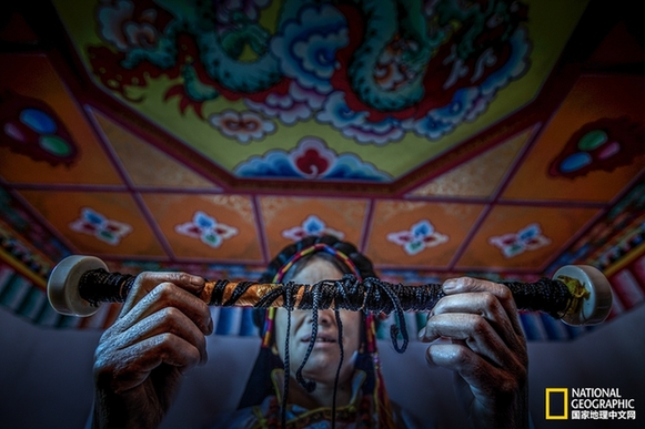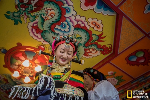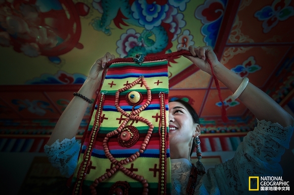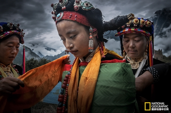 泽仁拉姆在展示母亲为她准备的头饰,成人礼的头饰价值不菲。大多数家庭在在女孩子一出生就开始积攒准备,贵重的多达几十万人民币。