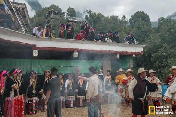 每个寨子都会有一个德高望重者被称为吉祥老人,他们是藏寨中的世俗领袖。这是吉祥老人在给大家讲成人礼的流程及应该注意的问题。