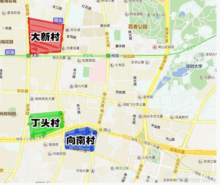 盘点南山3块黄金旧改:大新村 向南村 丁头村(卫星图)