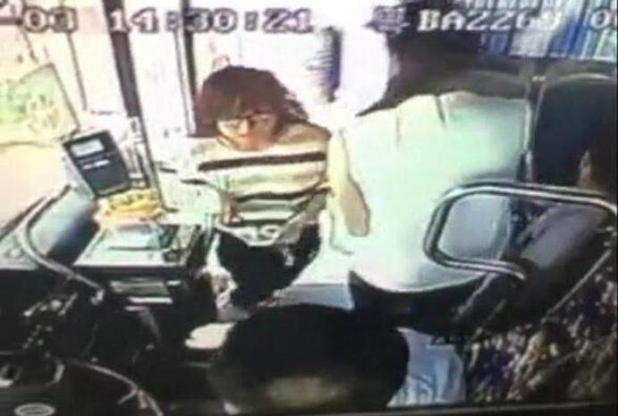 8月3日下午2点多,龙华大浪宝龙新村一辆M421公交司机准备靠站停车下客时,车门外突然冲上来一名女性,抽出手里的刀直接抹向司机的脖子,在司机的脖子上割了一刀后转身就跑。随后,司机被送往深圳市人民医院龙华分院抢救,经过治疗,目前伤情稳定。当晚21时15分,民警将嫌疑人刘某(女,20岁,河南人)抓获。目前,该案正在进一步调查中。图为嫌疑人刘某跑上公交车。