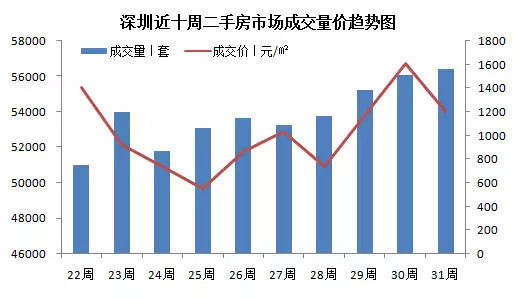 与新房市场量价齐跌现象形成鲜明对比的是,二手房市场量价齐升。观看近十周二手房成交情况,成交量一直稳步上升,进入7月份后,成交量增长加速,最终7月成交5838套二手住宅,环比上涨23.4%。家家顺监测数据表明,成交价呈现U字型,7月份除第28周有小幅下滑外,成交价呈急剧上升趋势,7月二手成交均价54067元/㎡,环比上涨3.8%。