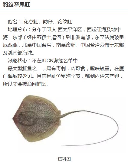 这条“怪物”鱼究竟是什么品种?记者把它的图片发给身边人咨询,有人说像“魔鬼鱼”,有人说是鳐鱼的一种,还有人说可能是花点魟。记者从网上搜索图片对比,发现和这条“怪物”鱼最相像的是豹纹窄尾魟。截至记者发稿,还未得到专家的鉴定结果。