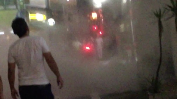 综合多名目击者的说法,当庆典中的森巴队伍经过之后,队伍后方的4至5米处,就有白烟和火舌冒起。其时有人看见有筒状物从附近建筑物的3楼处扔下来,初时以为是庆典装饰用的灯笼,后来才知是有燃烧瓶掉下,大人和小孩都纷纷避开。有人的衣服和鞋子着火,救护车和消防车随后到场,场面非常混乱。
