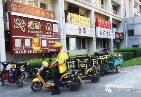 楼房鳞栉、人流密集,地铁6号线到终点站草房站B口出来就是中弘·北京像素小区。这个位于五环外的大型社区,是北京东部最密集的居住区。21栋建筑以宛如风车形状排列分布,从上空俯瞰,时尚又浪漫。小区内21栋楼仅以颜色区分,七彩色块中住有9700余户居民,商住两用的房屋属性吸引了大量创业者和租客,小区周围亦有30余栋写字楼。像素北区为居住区,并没有对外经营的门脸,每栋楼的一层还是开起了餐馆、足疗、美发店,这些小店招牌对外,店门则从楼道进入。昏暗的楼道内,五颜六色的霓虹灯让人有种进入商业街的错觉。重案组37号统计,北区共11栋楼,大大小小饭馆有102家,其中73家上了外卖平台。一到饭点,送餐员就骑着电动车来回穿梭。