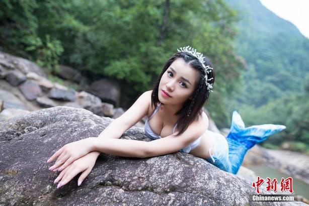 近日,在江西鹰潭龙虎山圣井山景区,厦门大学校花程熙媛和“网红”小孽上演了真人版“美人鱼Twins”。两位青春靓丽的姑娘扮成人鱼,一个身穿着红裙优雅文静,一个扮相“春丽”俏皮可爱,引来游人围观。 吴师潮 余楷 摄