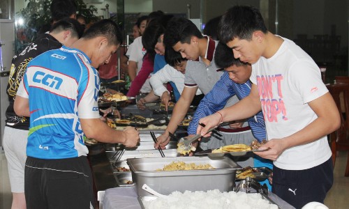 在食堂,刘翔有一间自己的包厢,不过他从没有单独在里面吃过饭。每到吃饭时间,他就会把自己的“特别版”佳肴端出来,和队友们一起分享——那些菜,一个人确实也吃不完。还有特别为他准备的酸奶和水果,也常常进了队友肚皮。