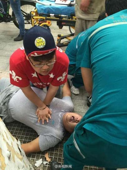 8月9日18点30分,郑州人民医院男护士李笑展在赶赴约会的路上,见路边一50多岁的先生倒地,口唇发紫呼吸困难,他立即上前对其采取了胸外按压急救措施;待急救车赶到,他协助救援,直到病人病情稳定才离开。央视记者 邱宝华