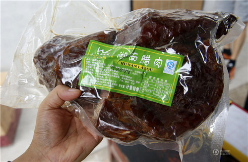 当日上午10时,记者见到了张海,他拿着一份标有“湖南腊肉”字样的真空包装袋。记者看到这袋腊肉从感官上看,烟熏肉质油光发亮招人喜欢,但摸着有些偏软,似乎有水,不像熏制的腊肉。他介绍,之所以肉质偏软那是因为里面注水了,颜色鲜艳那是因添加剂加量了。张海说,自己曾在这家工厂干过,系检验、化验岗位,刚开始时里面的添加剂还能按照要求添加,但从去年开始老板要求加大剂量,并从外地购置注水机,朝肉里面注射添加剂,他向老板建议可提高价格但不能用这种手段,最后遭到老板拒绝并训斥,无奈今年年初他离职。 7月8日下午,他途经西安大兴路方欣批发市场时,看到自己原来所在的厂家生产的肉品和几年前相比,质量越来越差,于是忍不住购买了一份,想了整整一个晚上,决定向媒体爆料。