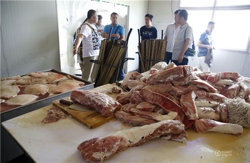 张海提供的样品显示,这份“湖南腊肉”生产厂家为“西安威联肉制品有限责任公司”,生产地址在西安市临潼区新丰刘寨工业园内。配料为:鲜猪肉、食用盐、白砂糖、味精;食用添加剂为:亚硝酸钠。7月10日上午10时,记者根据厂家标注的厂址,驱车来到此处,但寻遍园区也未找到挂门牌的厂家。最后在张海的指引下,在临潼区新丰刘寨村一处山坡下找到了这个没有任何标示的厂房,但大门紧锁,周边的群众称只知道是外地人在里面生产腊肉,但咋样生产村民都没见过,这家厂子大门一年四季都关着。接到记者举报后,省食品药品监督管理局高度关注,并决定由该局肉制品监管处牵头启动“飞行检查”。