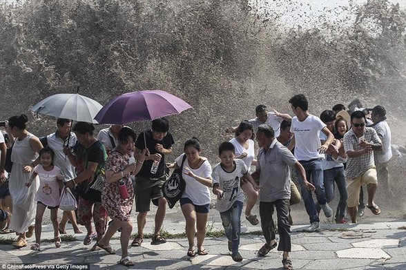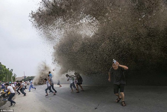 巨大的潮涌总是出乎人的意料,每年总是有很多人与它亲密接触。